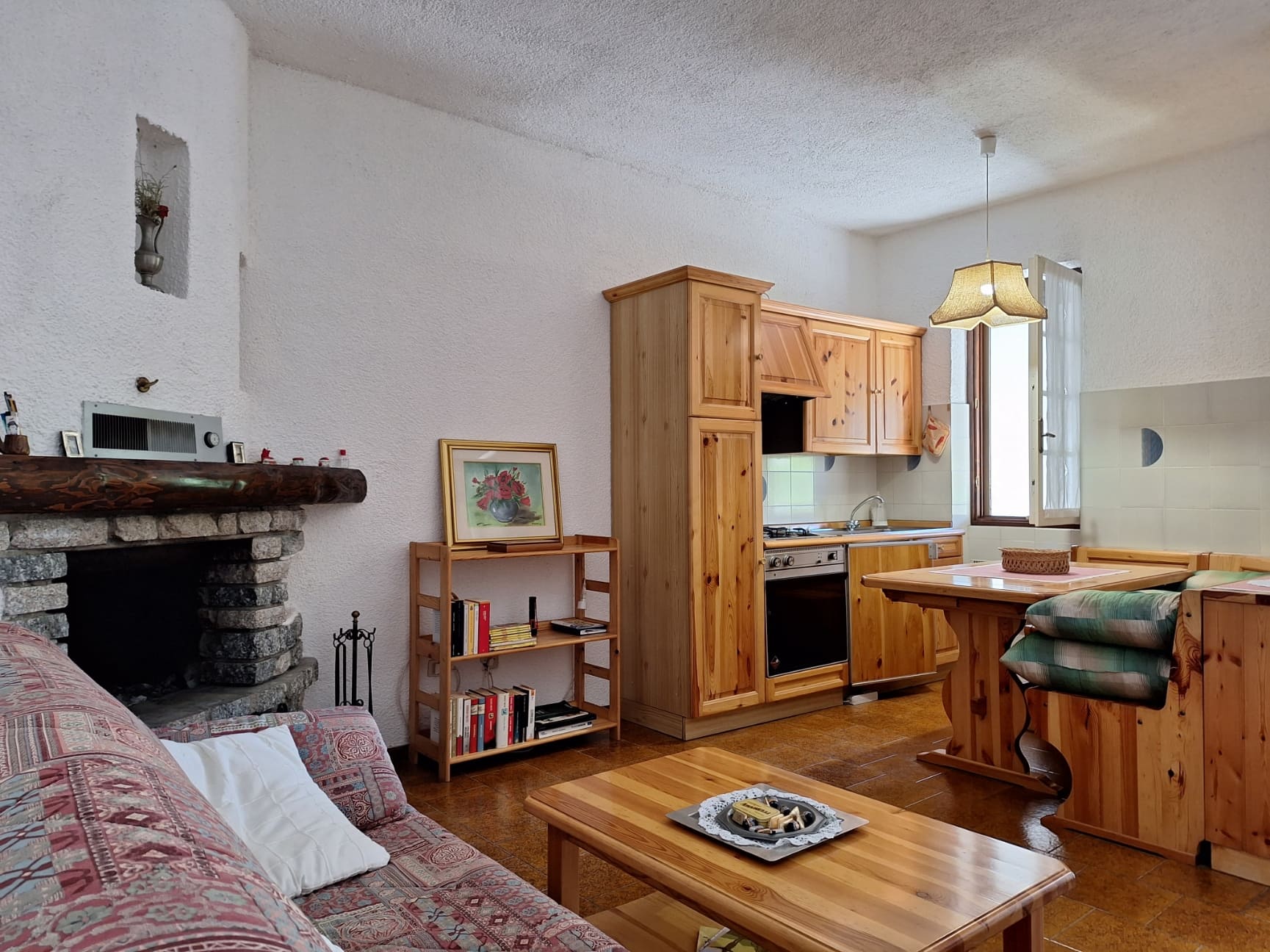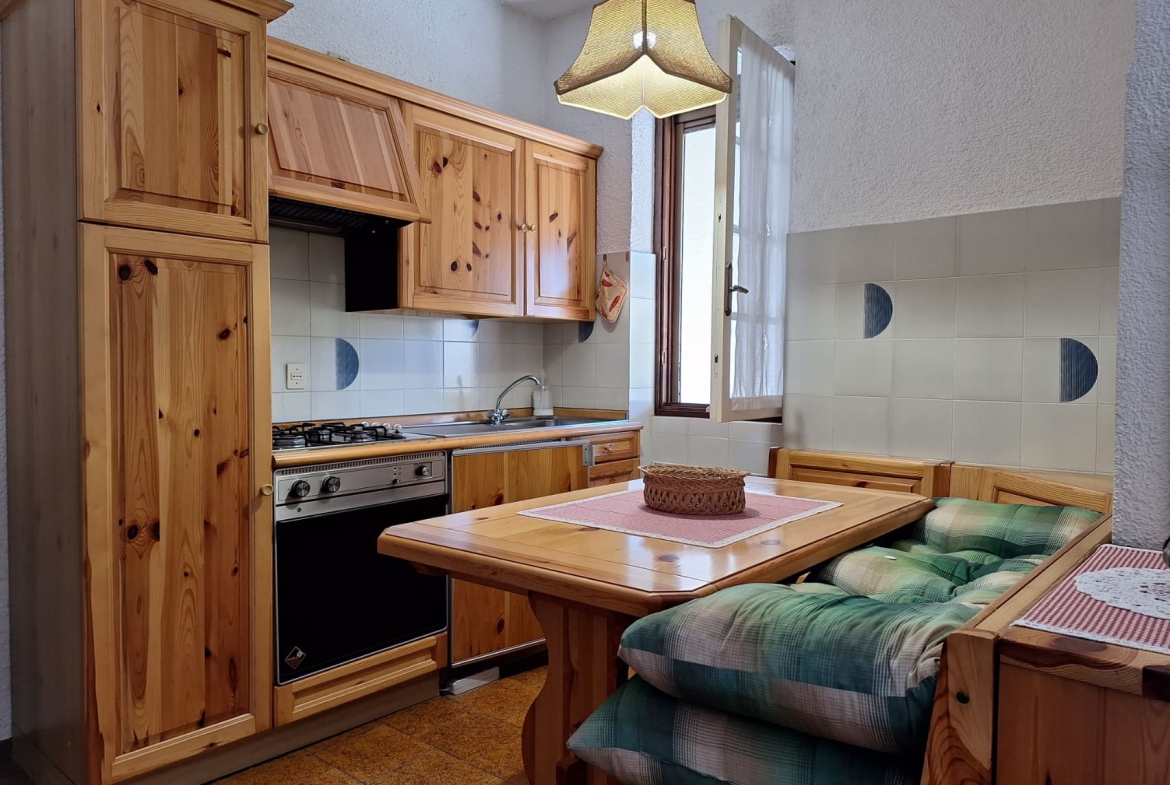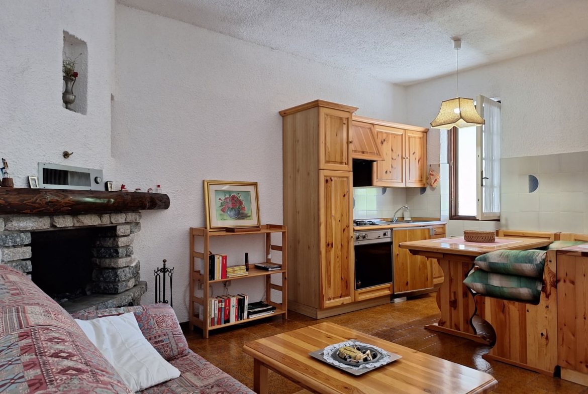 L’interno si compone di un soggiorno accogliente con angolo cottura completo e caminetto, di una spaziosa camera matrimoniale ed un bagno finestrato con doccia.